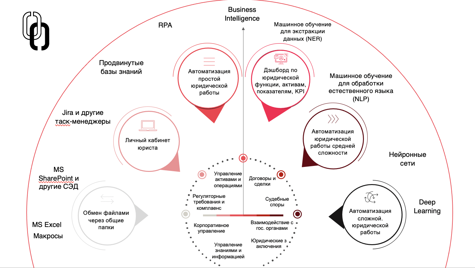 LegalTech барометр показывает уровень "давления" технологий . Чем выше показатель, тем технологичнее автоматизации. Выберите, что доступно Вам в использовании и сможете понять, какие системы и процессы готовы для качественной автоматизации в вашей работе.
